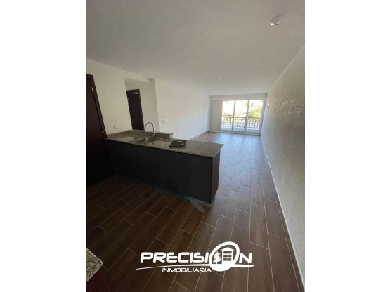 Sala comedor y cocina integrados con balcón